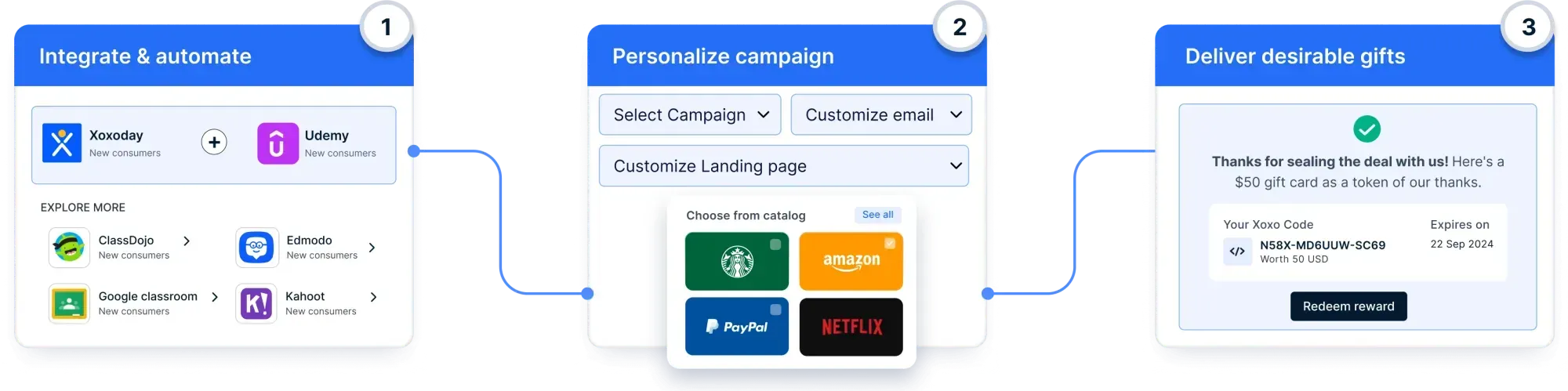 Use Xoxoday’s reward platform to gamify the learning experience for your students. Reduce your platform’s drop-off rates, drive better behaviors, and achieve organizational goals faster.